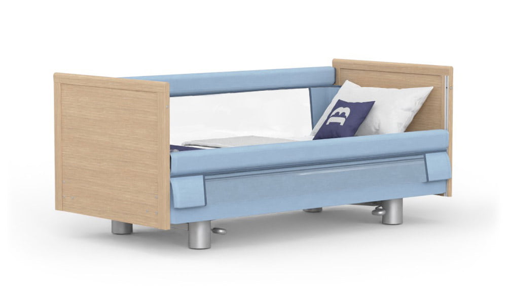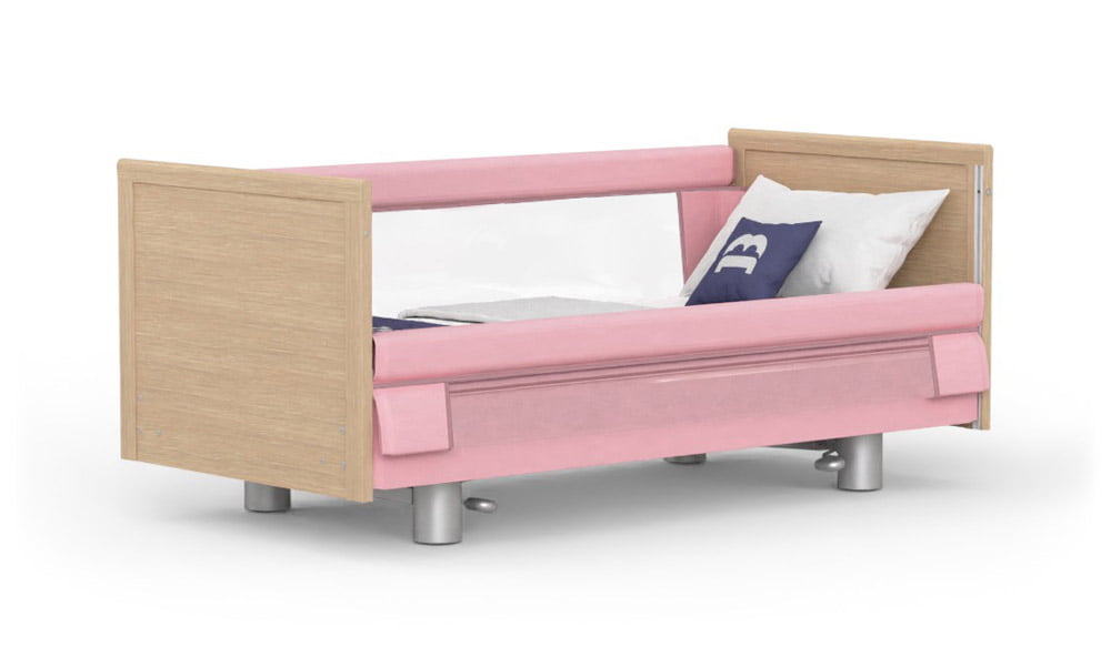 The Klearside® Low has been thoughtfully designed to afford a great alternative to a full-length side rail bed. The large clear windows provide a great deal of light and visibility and ensure users don’t feel “trapped”. The windows, which are made of high-strength, transparent PVC and available with both perforated and non-perforated surfaces, are mounted on foam-padded wooden support rails on both sides for extra security. The bed is also fully height-adjustable – it can go down as low as 25cm to help users get in and out of bed and be raised up to 82cm to provide a safe working height for carers. The Klearside® Low harnesses technology to make the bed comfortable and easy to use, with a range of accessories and convenient handset that operates all bed functions. The four-section profiling lying surface and raised comfort position are designed for maximise well-being whether users are sitting up or lying down and Trendelenburg and Anti-Trendelenburg (tilt) come as standard. The bed can also be easily moved around for cleaning or care, with hidden wheels and has a 2+2 lockable undercarriage as standard. The Klearside® Low boasts a stylish design and options include attractive cream, blue or pink colours so it can easily complement existing furniture in the home, as well as in professional care environments. This is a high quality, robustly-built and precision-engineered bed that will stand the test of time. Our acclaimed support service is available 365 days a year ensuring that professional advice is always just a phone call away. BaKare is a trusted and reliable partner with decades of experience and expertise, a dedication to providing customers with genuine solutions that really meet their needs, and an unrivalled reputation as a truly caring and conscientious company.